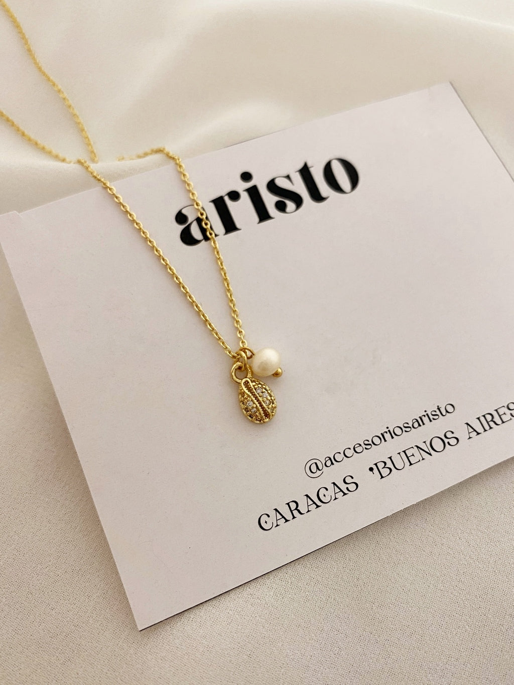 Collar regulable bañado en oro 18k con perla cultivada mini.