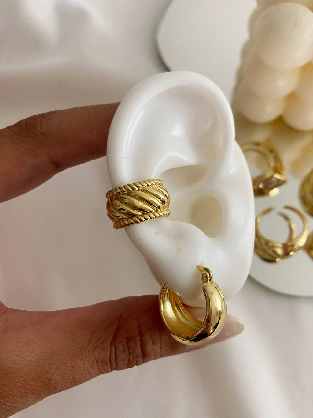 Zarcillo en baño de oro ajustable, no requiere perforación, precio por unidad.