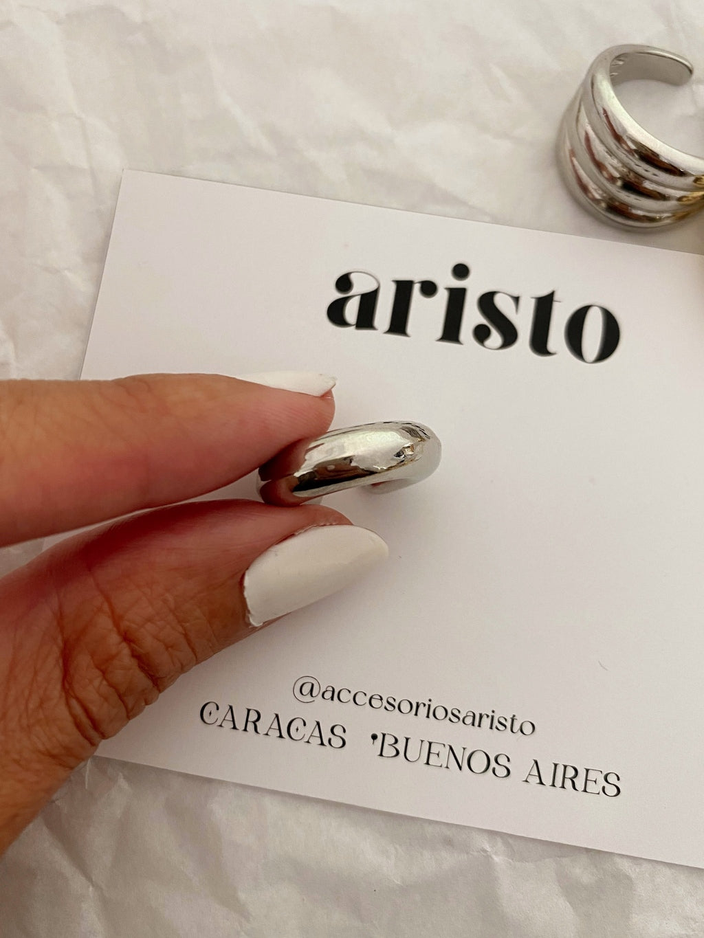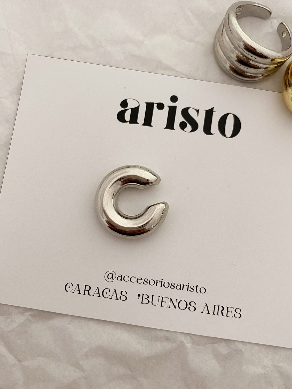 Zarcillo ajustable bañado en rodio, no requiere perforación. Precio por unidad.