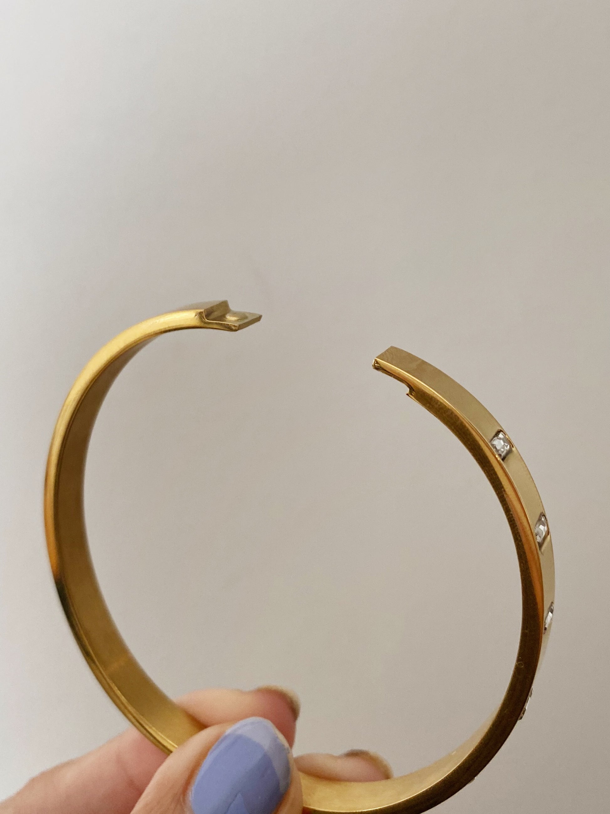 Pulsera rígida en acero inoxidable 316L con recubrimiento en oro 18k.