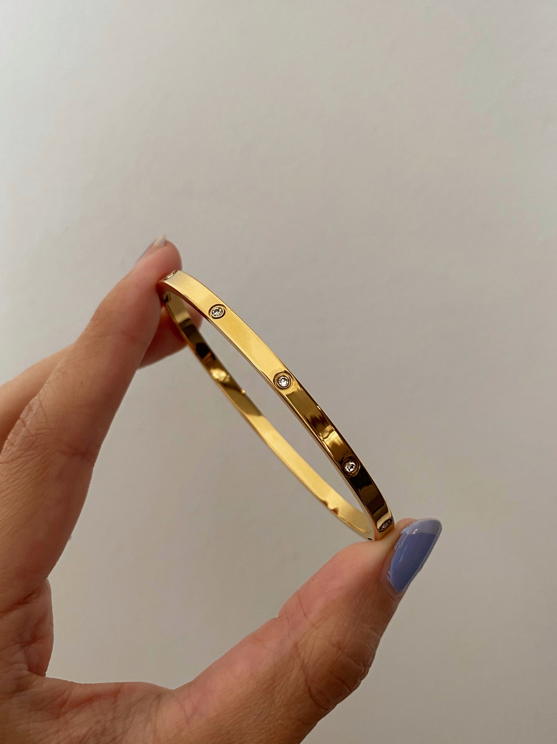 Pulsera rígida en acero inoxidable 316L con recubrimiento en oro 18k.