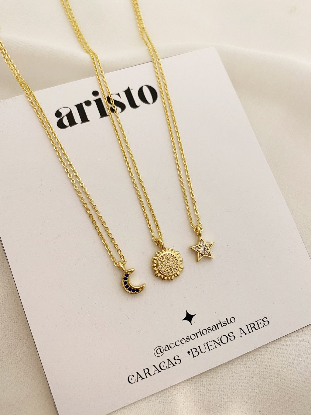 Set de 3 collares bañado en oro 18k regulables de largo.